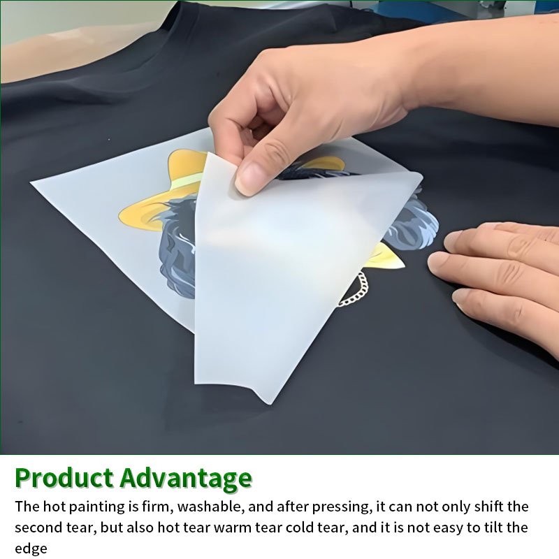 The substrate surface utilizes a highly absorbent, specialized coating, combined with a special release technology, ensuring even ink absorption and strong ink retention. This prevents ink pooling and bleeding, allowing for the precise reproduction of full-color patterns, gradients, fine lines, and photorealistic high-definition details. The colors are rich and vibrant with high color accuracy. When combined with a white ink undercoat, it ensures that patterns on dark fabrics remain bright and fade-resistant, without appearing dull or gray. The edges are smooth and free of jagged lines, perfectly reproducing every detail of the original design, giving your creative vision a more refined and high-quality finish.